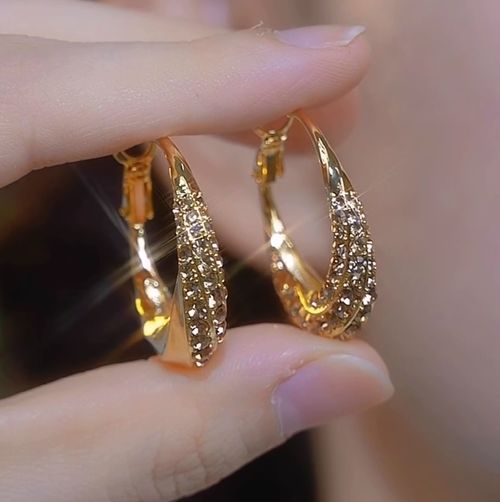 Fashionable & Elegant Gold Circle Earrings with Diamond Inlays