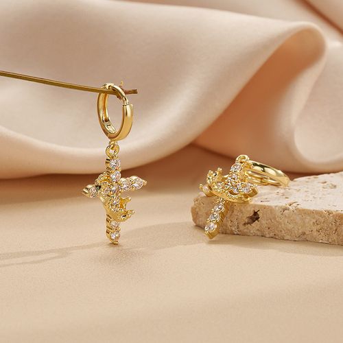 Rotatable crown and cross ear pendants, set with diamonds, featuring a personalized and creative design for earrings. 1 sales